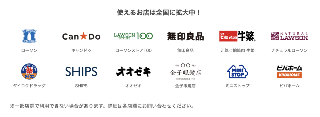 使えるお店も多く、日用品の購入にもぴったり。