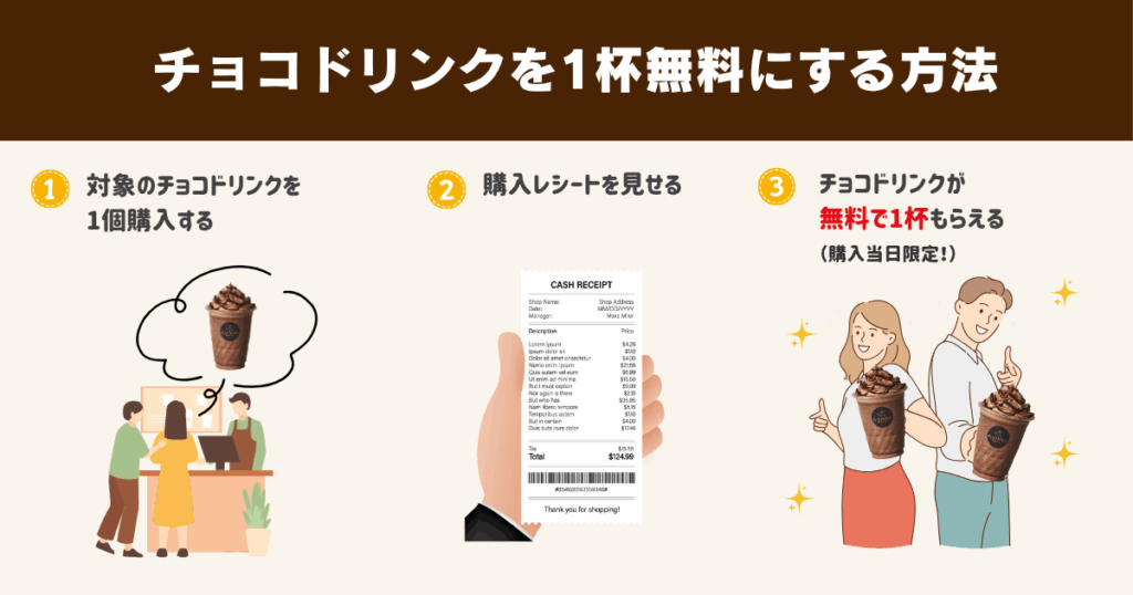 ショコリキサーを無料でもう1杯もらう方法は、とてもシンプルです。