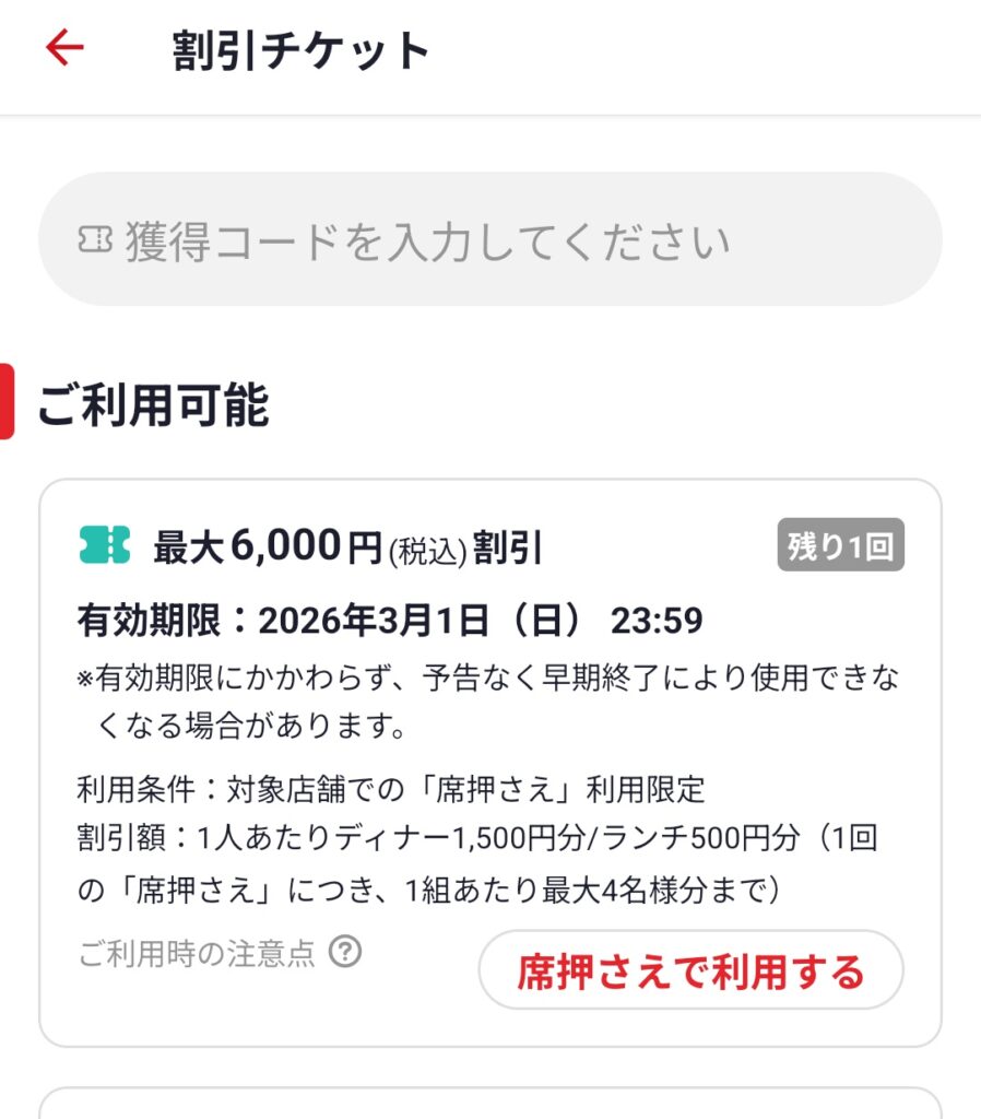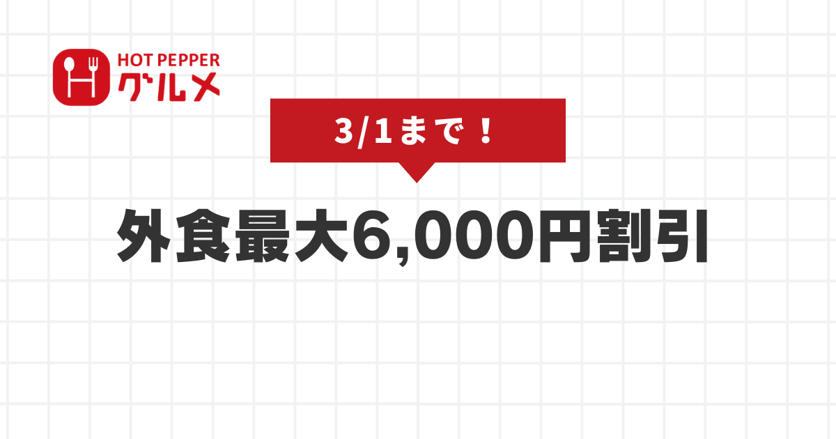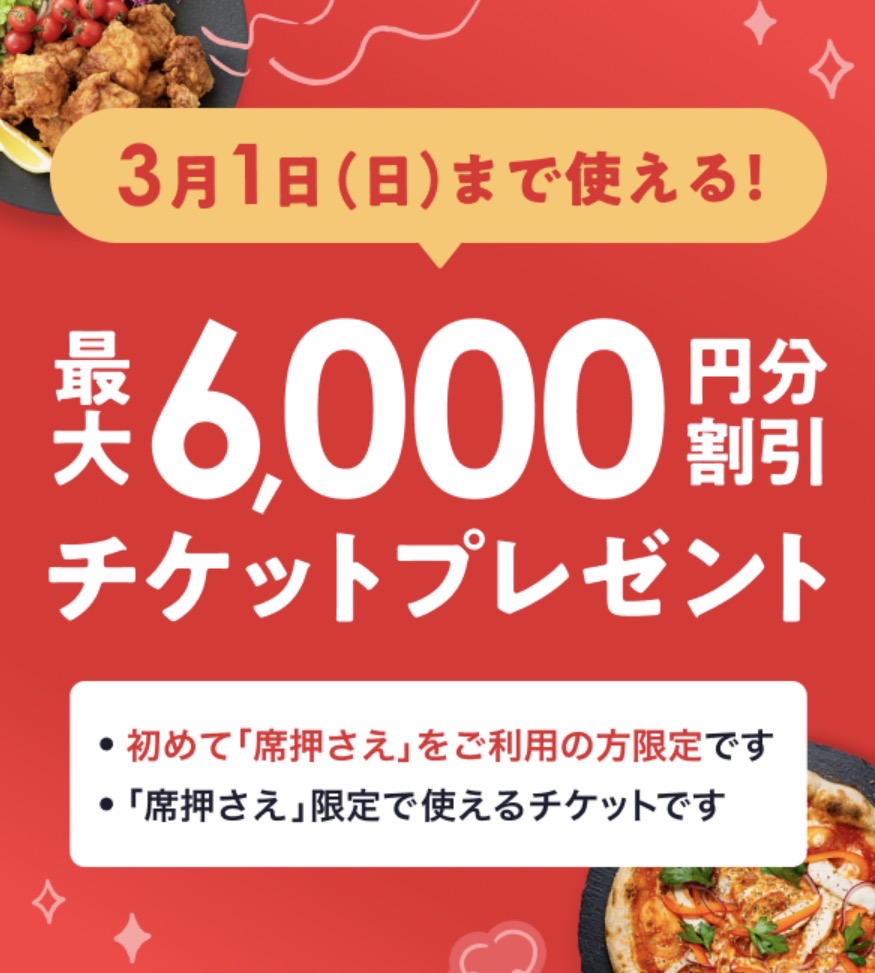 ホットペッパーグルメ席押さえ最大6,000円クーポンの期限は3月1日まで