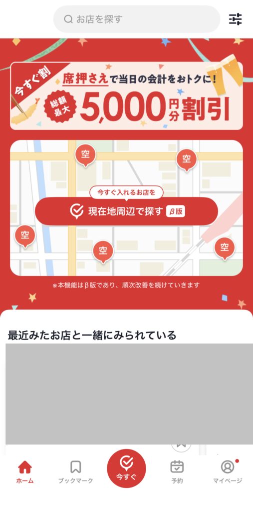 席押さえ機能は、現在地周辺の店舗のみ表示される仕組みです。
