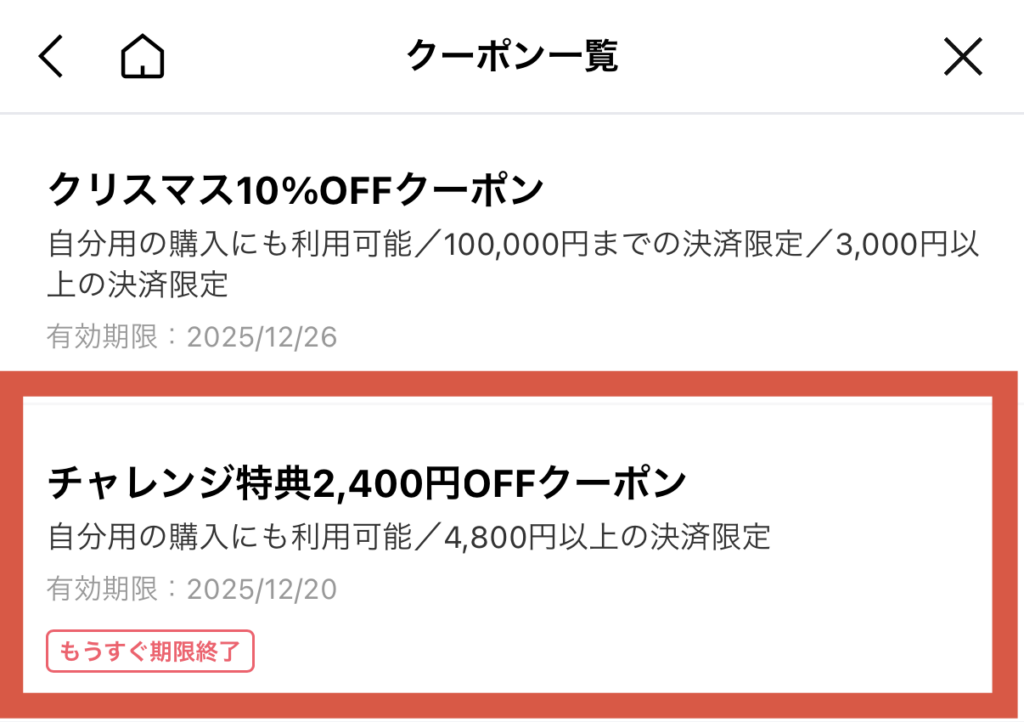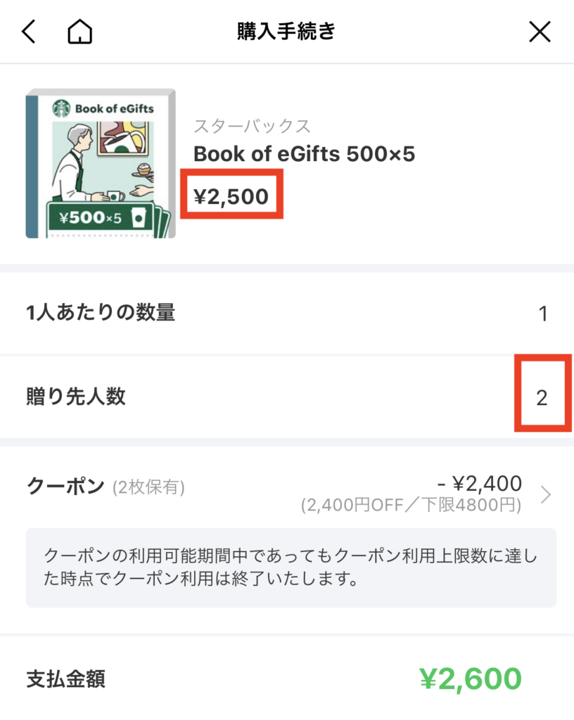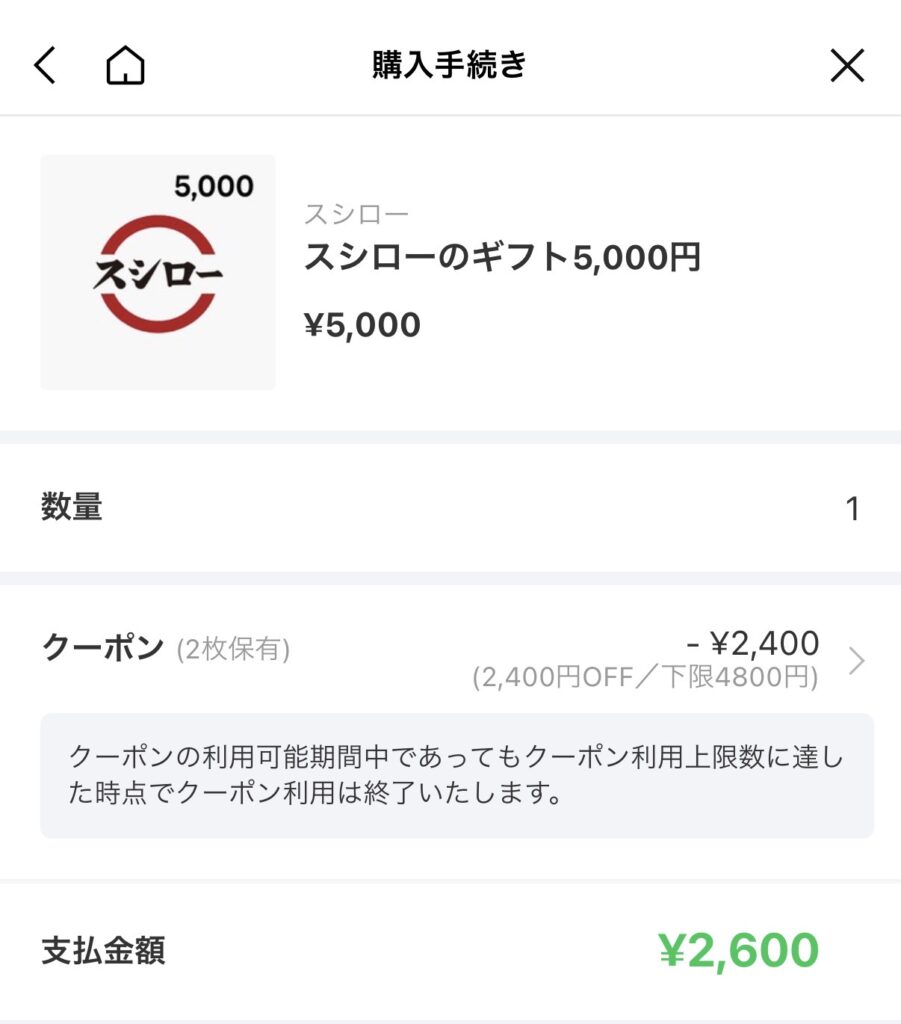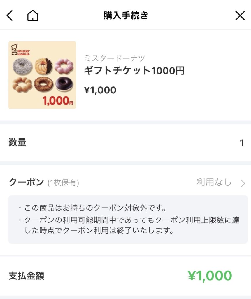 - クーポンを使ってギフトを購入する(自分宛OK)