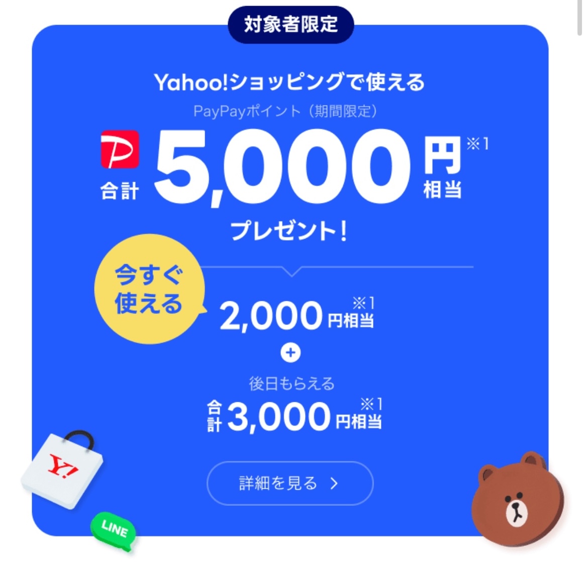 LYPプレミアムに登録すると、合計で5,000円分のPayPayポイント(期間限定)が付与されます。