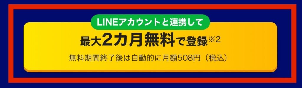 1ヶ月分の月額料金(508円)が無料になり、追加でポイント付与の対象になることがあります!