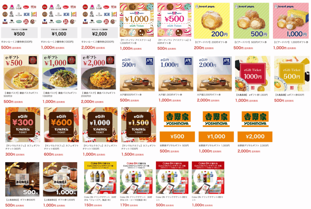Yahoo!ショッピングで購入できるeギフトや食事券です!(詳しくはこちら