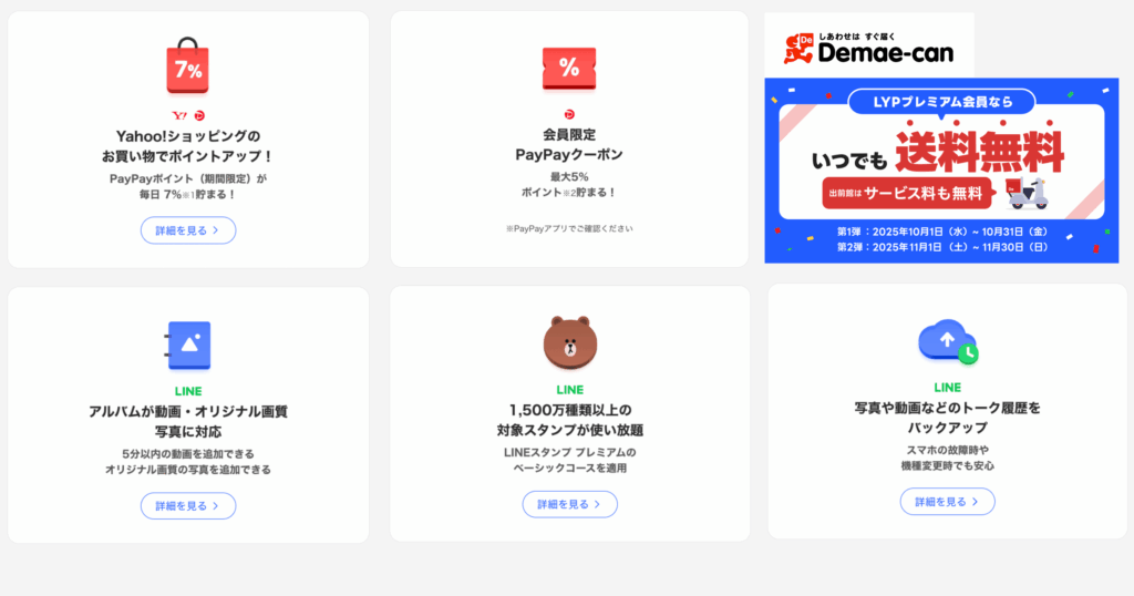 LYPプレミアムは「登録して2,000円もらえるだけ」ではなく、会員だと使えるお得な特典が複数あります。