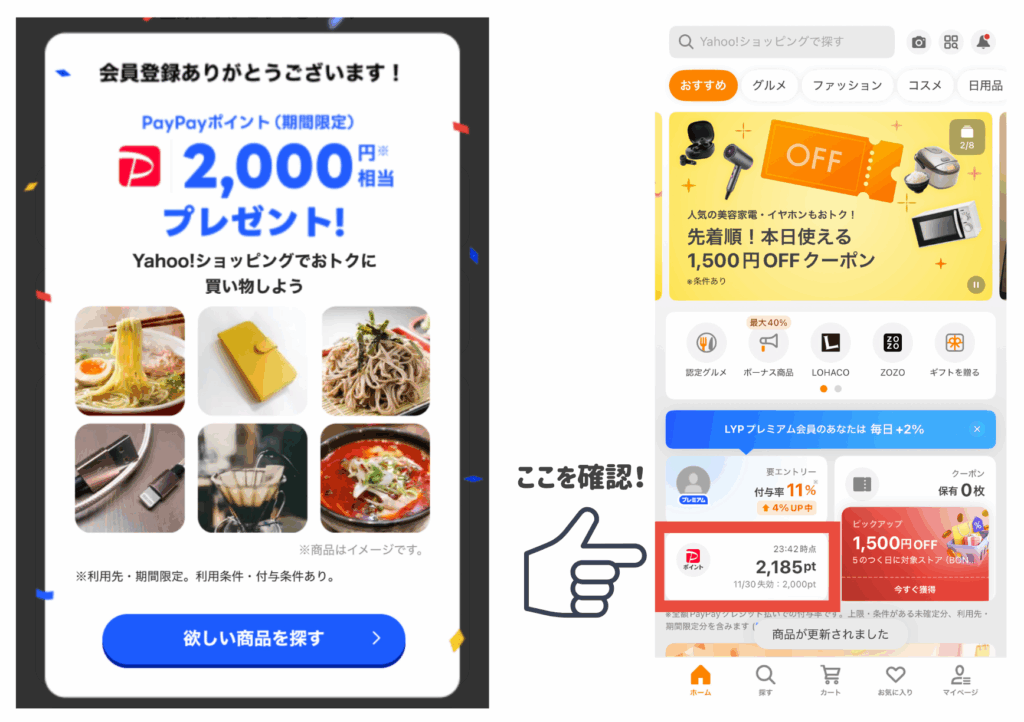 キャンペーンの対象だった人はサクッと登録して、無料で2,000円分のPayPayポイント(期間限定)をゲットしてみてください!