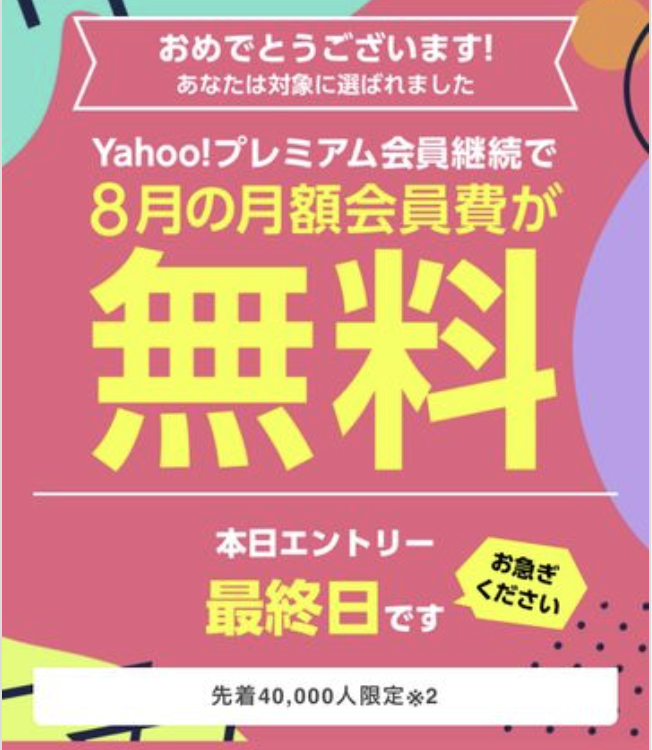 LYPプレミアムを解約しようとしたタイミングで、まれに引き止めキャンペーンが案内されることがあります。