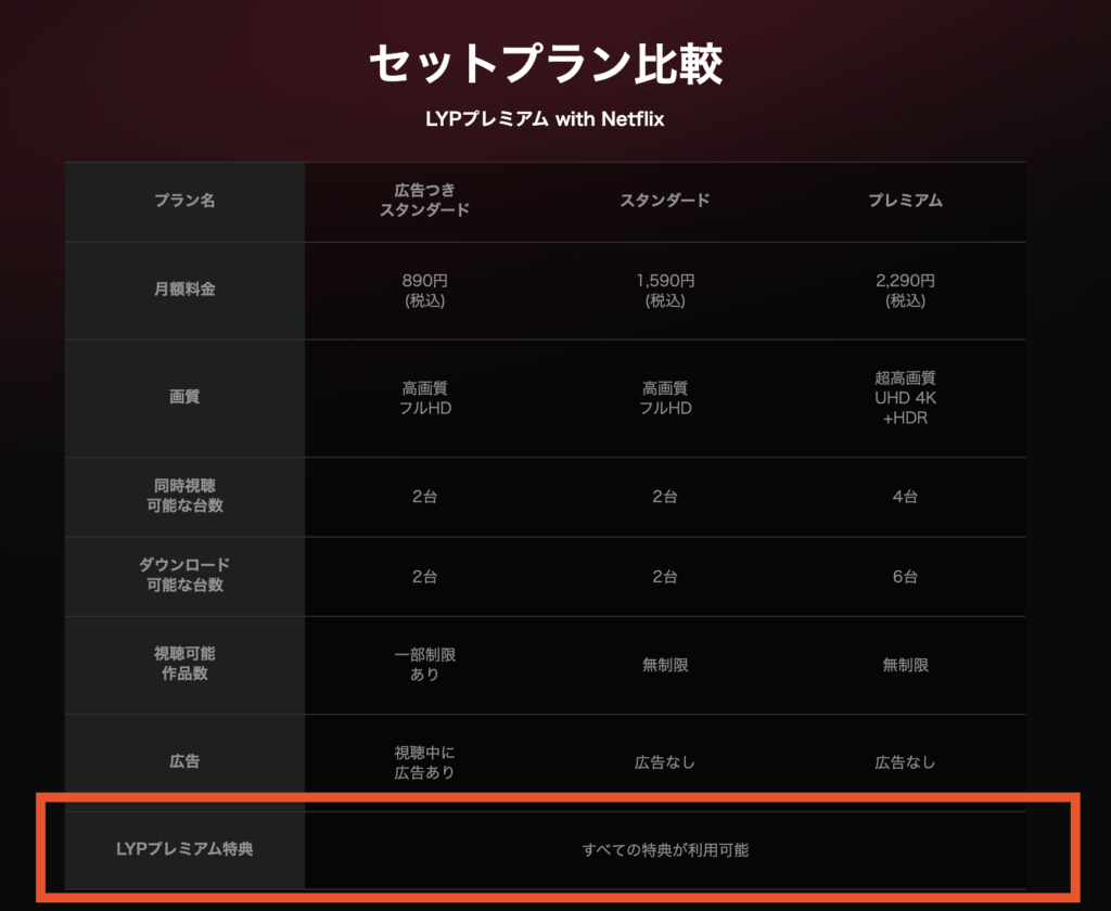 Netflixのどのプランを選択しても、LYPプレミアムの特典はついてきます!