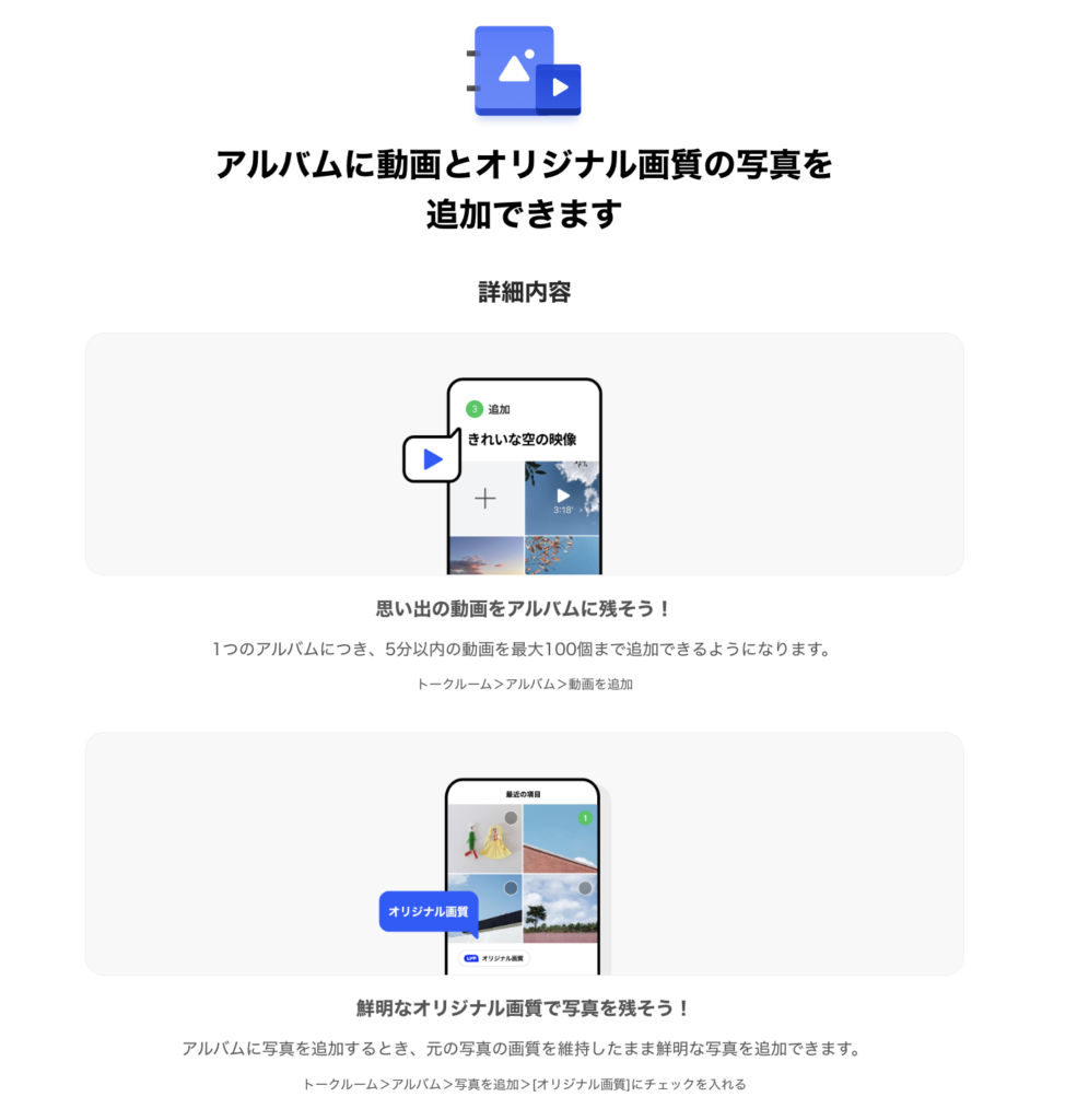アルバムに元の画質を維持したまま(オリジナル画質)で写真と動画が保存できます!