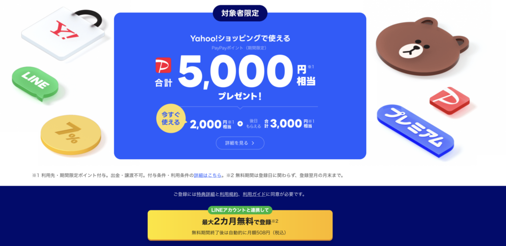 LYPプレミアム登録でもらえる”5,000ポイント特典”とは併用できないので注意!