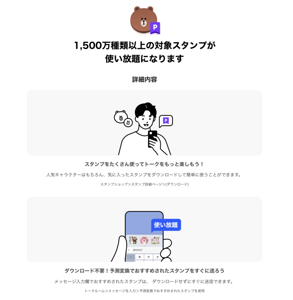 LINEで1,500万種類以上の対象スタンプが使い放題になります!