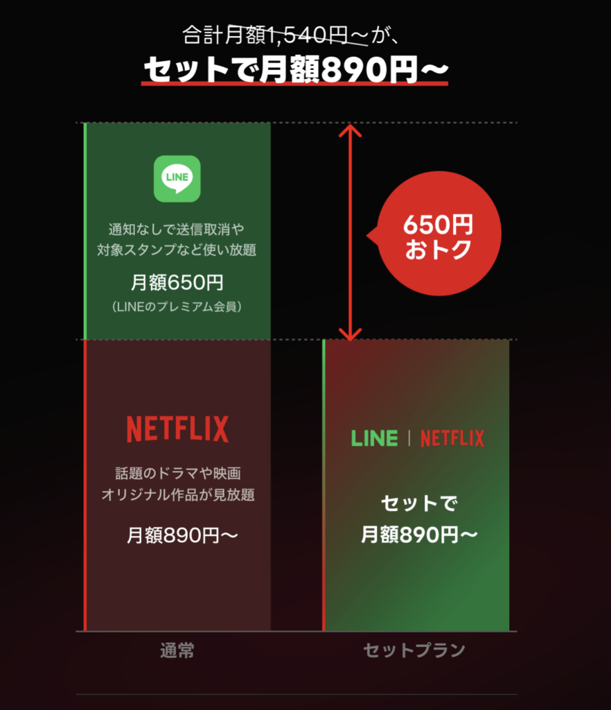 NetflixとLINEのセットプランに申し込むと650円得する!