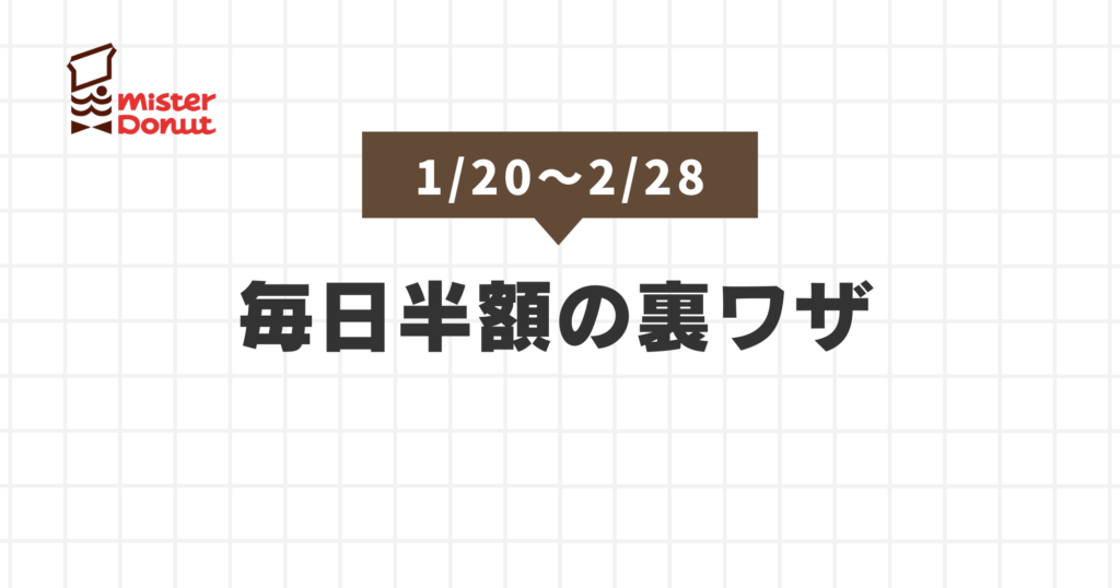 ミスドがアンケート回答で何度でも半額でゲットできます!最大何個までゲットできるのか?アンケートができない時の対処法まで徹底解説します! ミスタードーナツ半額クーポンを何度ももらう方法! 実施期間 2026年1月20日(水)〜2026年2月28日(土) ミスド... -