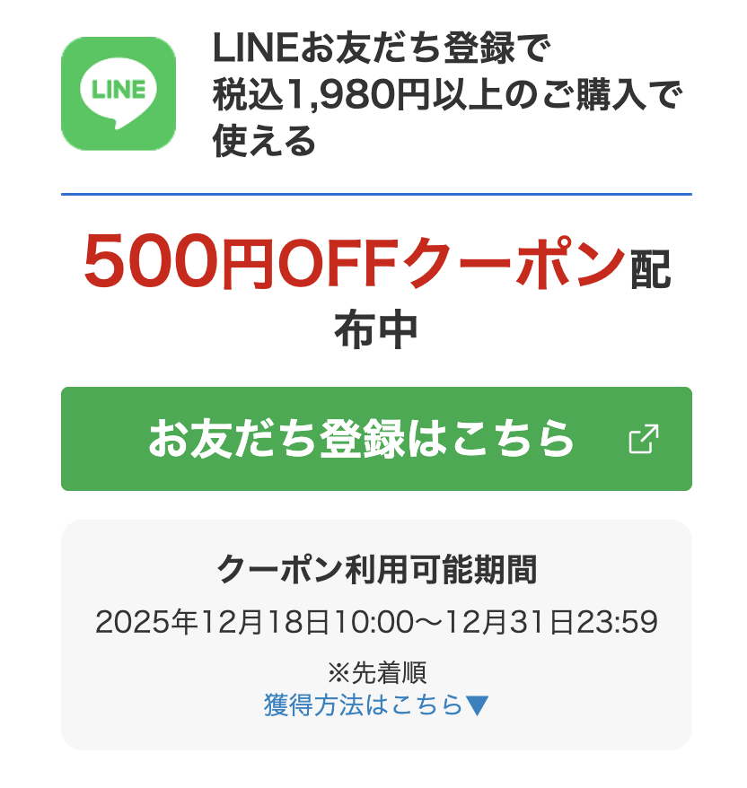 税込1,980円以上の購入で使える500円OFFクーポンがもらえます。