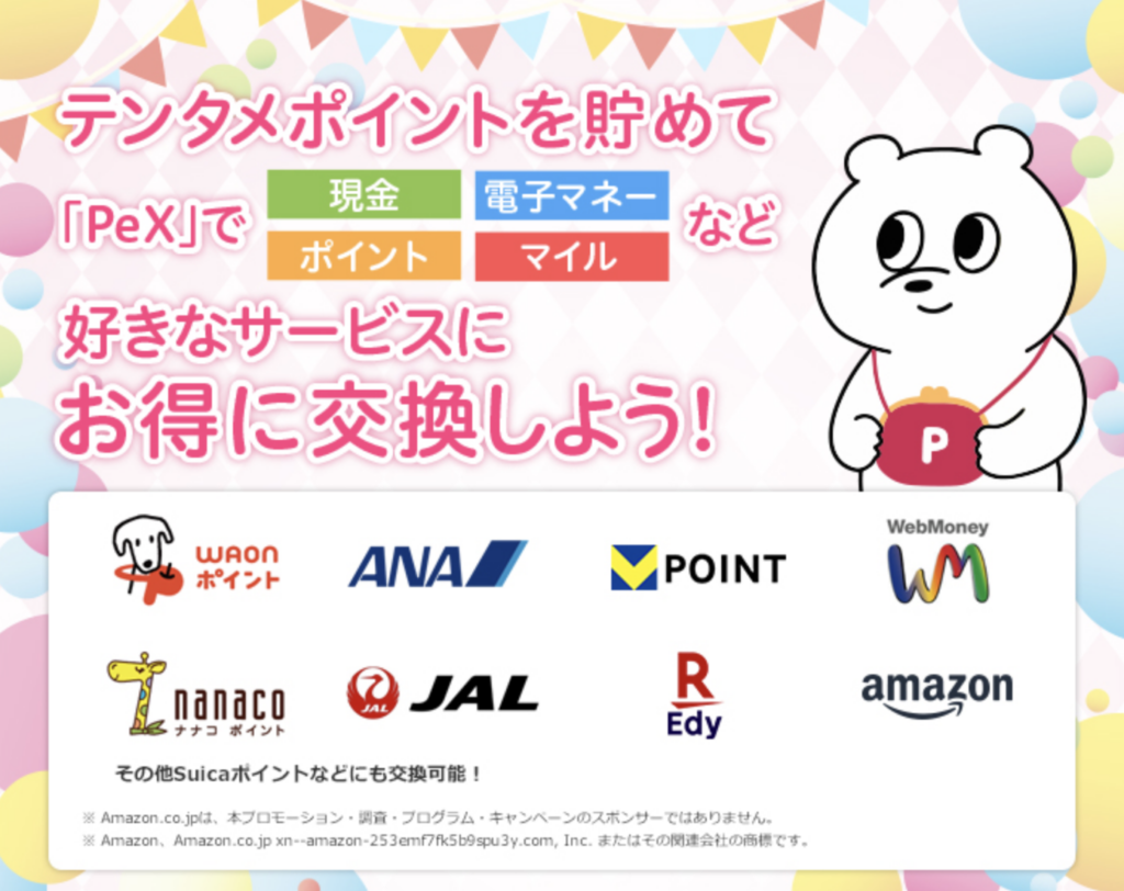テンタメで貯めたポイントは、以下の交換先に申請できます。