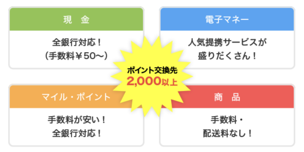 ・電子マネー・ギフト券・他ポイントなど、幅広く交換できる万能ポイントサービス